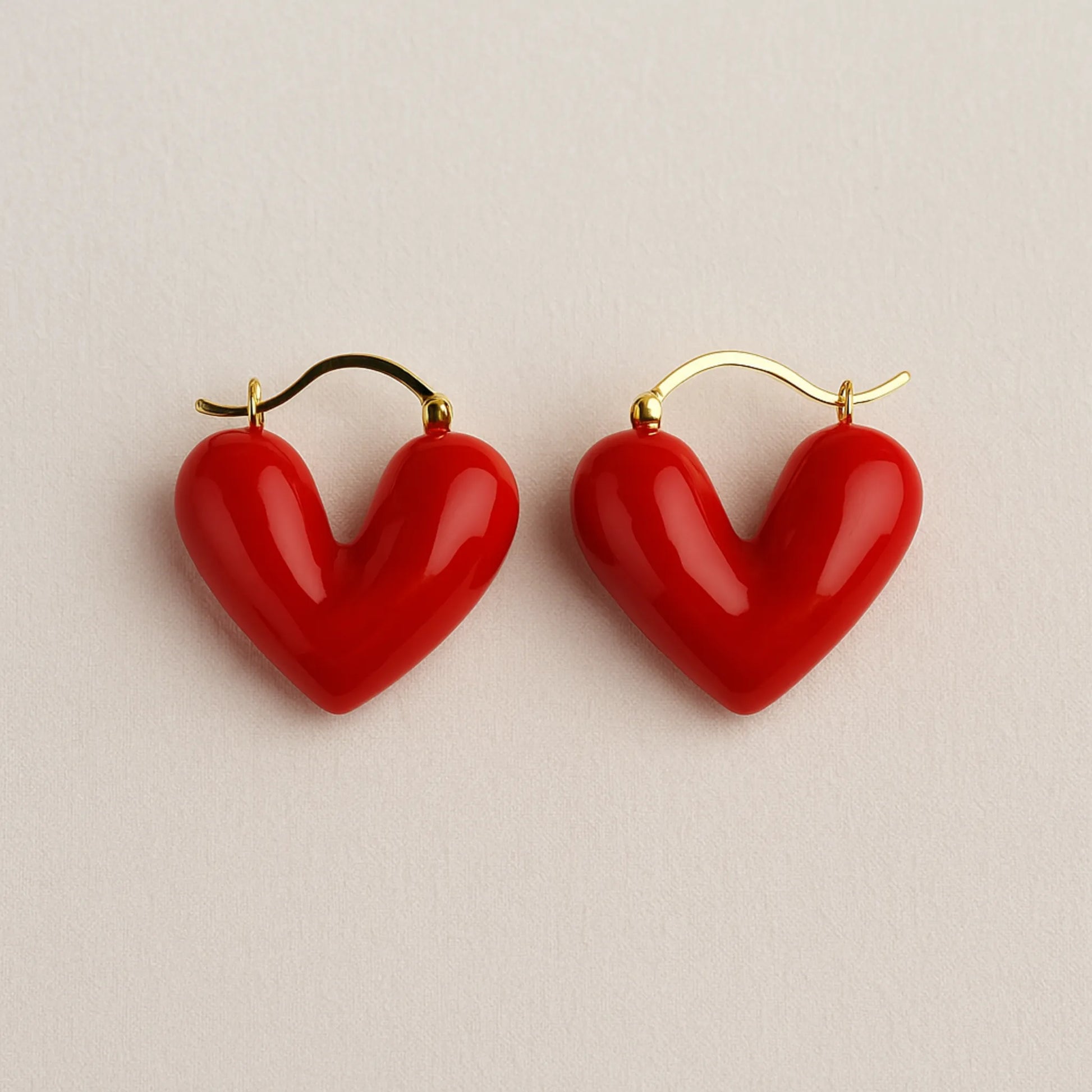 Aros Corazón Rojo Esmaltado, un diseño vibrante y romántico que resalta por su acabado brillante y color intenso. Perfectos para agregar un toque llamativo y juvenil a cualquier look, estos aros son una excelente opción para tu catálogo mayorista.